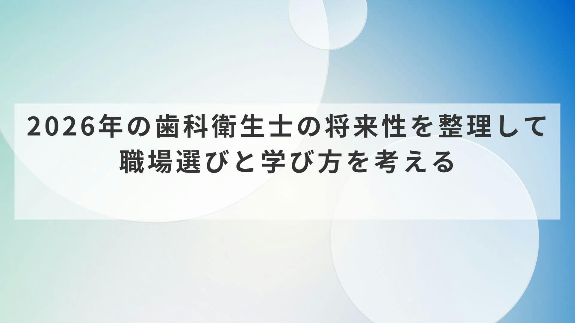 このページでは、2026年時点で歯科衛生士の将来性をどう見ればよいかを、需要、働きやすさ、学び直し、職場選びの四つに分けて整理する。